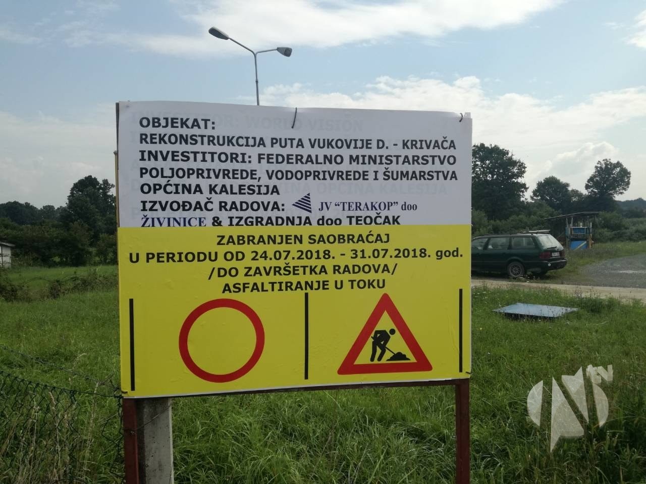 Iz općine Kalesija obavještavaju građane da će u periodu od 24.07.2018.godine do 30.07.2018.godine biti zabranjen saobraćaj na ovoj putnoj dionici.