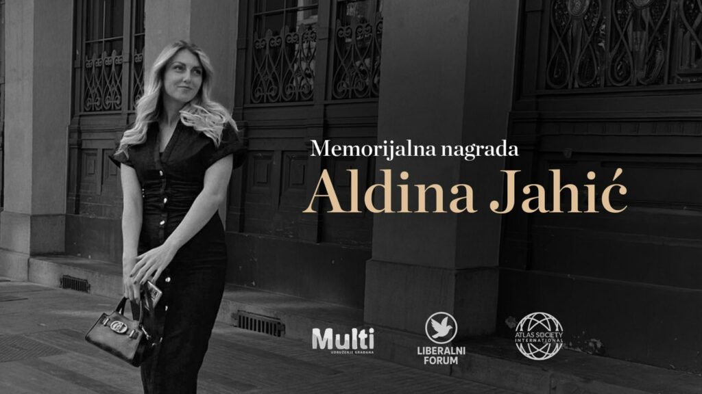 U znak sjećanja na Aldinu Jahić, organizacije UG Multi i Liberalni forum pokreću godišnju nagradu „Aldina Jahić“, koja će se od 2026. godine jednom godišnje dodjeljivati u Sarajevu. Nagrada je posvećena afirmaciji žena koje svojim radom i djelovanjem doprinose unapređenju sloboda, ljudskih prava i društvenog razvoja u zemljama Zapadnog Balkana.