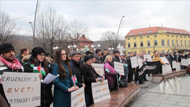 Više od stotinu građana Tuzle i Palestinaca koji žive ili studiraju u ovom gradu okupilo se danas tokom jednosatnog protesta na Trgu slobode, odakle su poslali poruke podrške narodu Palestine, javlja Anadolu Agency (AA). “Mi ovdje mirno protestujemo i šaljemo poruku da se ne slažemo s onim da neko daje nešto što nije njegovo nekome ko to uopće ne zaslužuje. Historijske činjenice su na našoj strani”, poručio je student Medicinskog fakulteta u Tuzli Mohammad Mosleh, jedan od organizatora protesta.