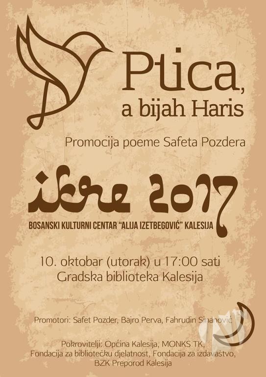 „IKRE 2017“: U utorak promocija knjige „Ptica, a bijah Haris – poema o Harisu Pilavu“ Safeta Pozdera
