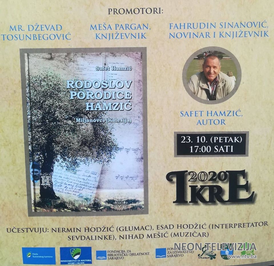 U okviru kulturne manifestacije “IKRE” koju organizuje JU BKC “Alija Izetbegović” Kalesija, u petak, 23.10.2020. godine sa početkom u 17 sati održat će se promocija knjige “Rodoslov porodice Hamzić”, autora Safeta Hamzića.