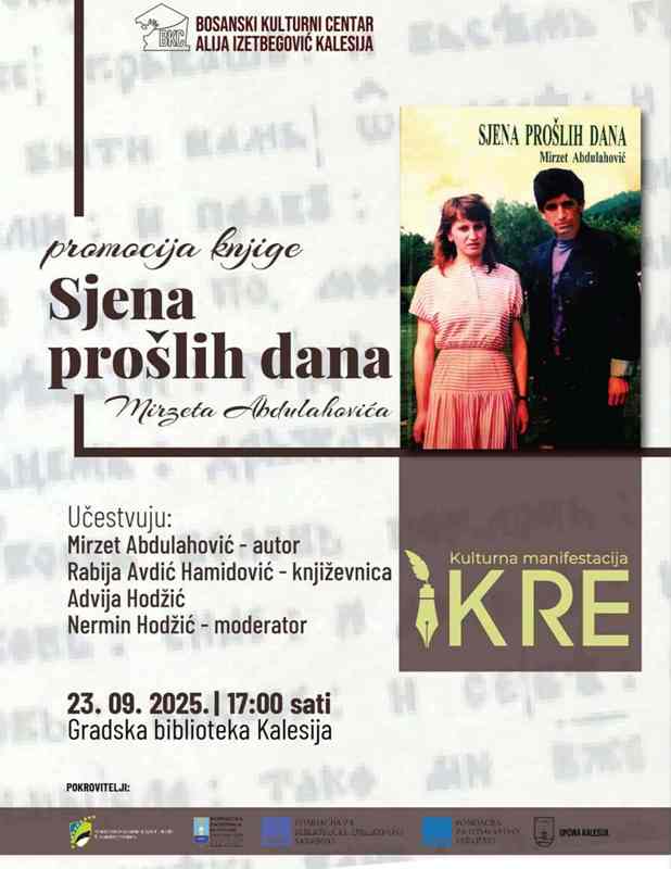 Naredni sadržaj u okviru kulturne manifestacije „IKRE 2025“ je promocija knjige Mirzeta Abdulahovića „Sjena prošlih dana“. Promocija će se održati u utorak, 23.09.2025. godine u Gradskoj biblioteci sa početkom u 17:00 sati.
