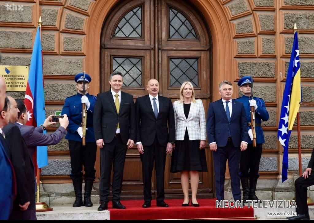 Predsjednik Republike Azerbejdžan Ilham Aliyev je stigao u zvaničnu posjetu Bosni i Hercegovini te se sastao sa članovima Predsjedništva Željkom Cvijanović, Željkom Komšićem i Denisom Bećirovićem.Aliyev je svečano dočekan kod zgrade Predsjedništva BiH uz najveće vojne počasti gdje se rukovao i fotografisao sa domaćinima, a nakon čega su uslijedili sastanci.