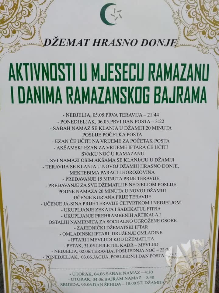 Ramazan u Hrasnu Donjem bit će obilježen još nizom aktivnosti. Imam džemata kaže da se savjetuje sa ostalim imamima sa područja MIZ Kalesija kako bi neke aktivnosti koje oni realizuju mogao primijeniti i u svom džematu kako bi upotpunio ramazanski program, ai obratno.