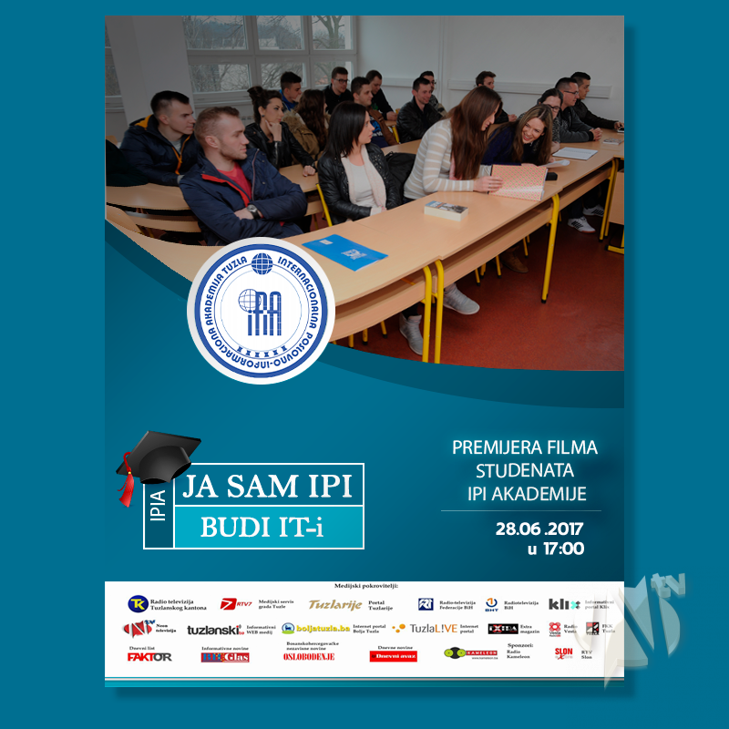 IPI Akademija Tuzla poziva sve da prisustvuju, uveličaju i podrže premijeru filma “Ja sam IPI budi IT-i”, koja će biti održana 28. juna 2017. godine sa početkom u 17 sati u prostorijama IPI Akademije Tuzla.