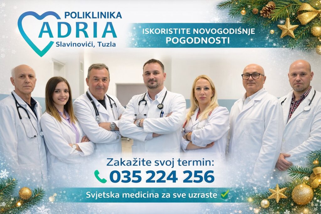 U povodu novogodišnjih praznika Poliklinika ADRIA nudi širok oblik zdravstvenih pogodnosti za sve populacije stanovništva.