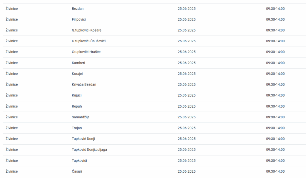 U nekoliko naselja u istočnom dijelu Živinica sutra (25. juni) će doći do privremene obustave u isporuci električne energije u vremenu od 9 do 14 sati.