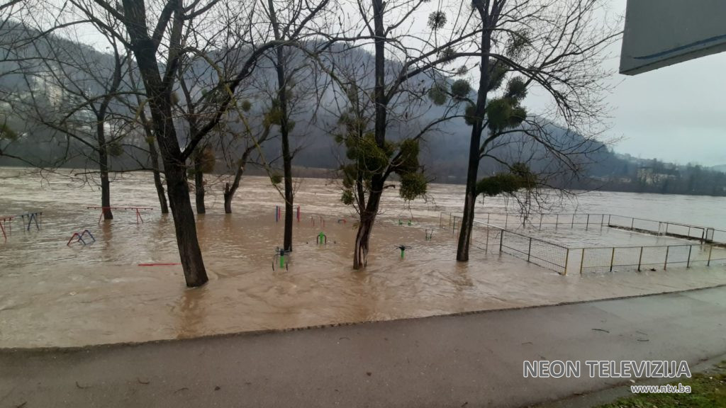 Na osnovu fotografija možemo vidjeti da je voda preplavila igralište koje se nalazi uz sami tok rijeke.