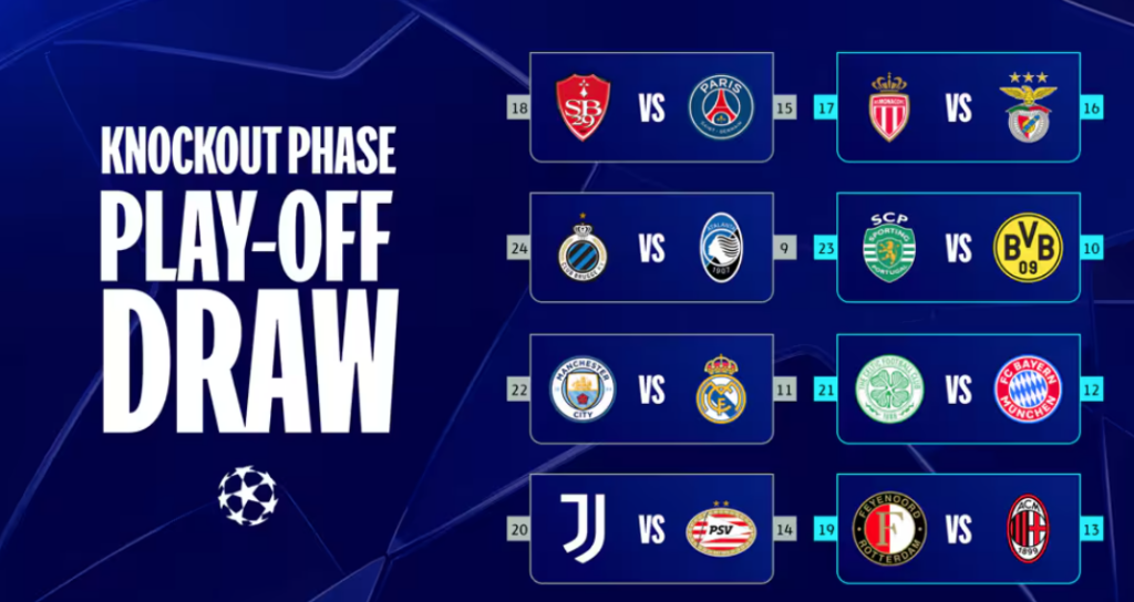 Prve utakmice play-offa se igraju 11. i 12. februara, a revanši 18. i 19. februara.