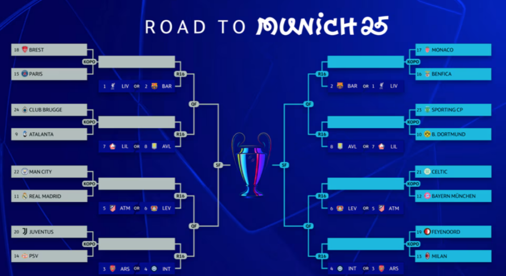Tako će pobjednici duela Brest – PSG i Monaco – Benfica u osmini finala igrati protiv Barcelone ili Liverpoola.