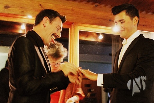 “Uz pomoć naše prijateljice Jordan, vjenčanje se održalo u kući njene pratetke, koja nas je predivno dočekala i ustupila nam svoj prostor, dok je maćeha od Jordan pukom slučajnošću bila naša matičarka.  U tih 10 dana upoznali smo dosta super ljudi i, naravno, pozvali ih na vjenčanje, tako da smo imali oko 20 gostiju.  Pošto nismo imali baš mnogo novca na raspolaganju, kada smo bili u jednoj hippie radnji, vidjeli smo dva “zlatna“ prstena sa šest cirkona u duginim bojama i tako smo našli naše burme.  Zavjete smo izgovorili na engleskom i, zahvaljujući našem prijatelju, imamo i snimak vjenjačanja, koji sa svojom jednostavnošću i nespretnošću učesnika šalje sliku ljubavi kakva ona jeste”, kaže Jasenko.