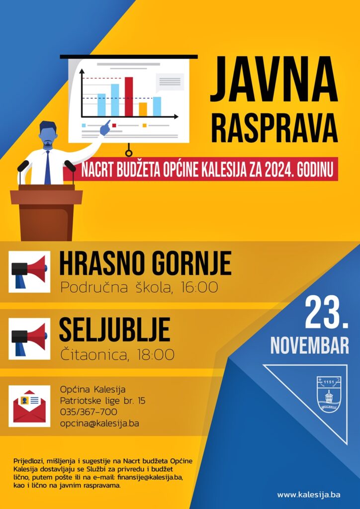 Javna rasprava o Nacrtu budžeta za narednu godinu održat će se danas u prostorijama škole u 16:00 sati u Hrasnu Gornjem i u čitaonici u Seljublju u 18:00 sati.
