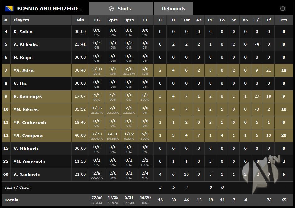 Bosna i Hercegovina – Slovenija 65:59 (12:17; 18:11; 16:18; 19:13)