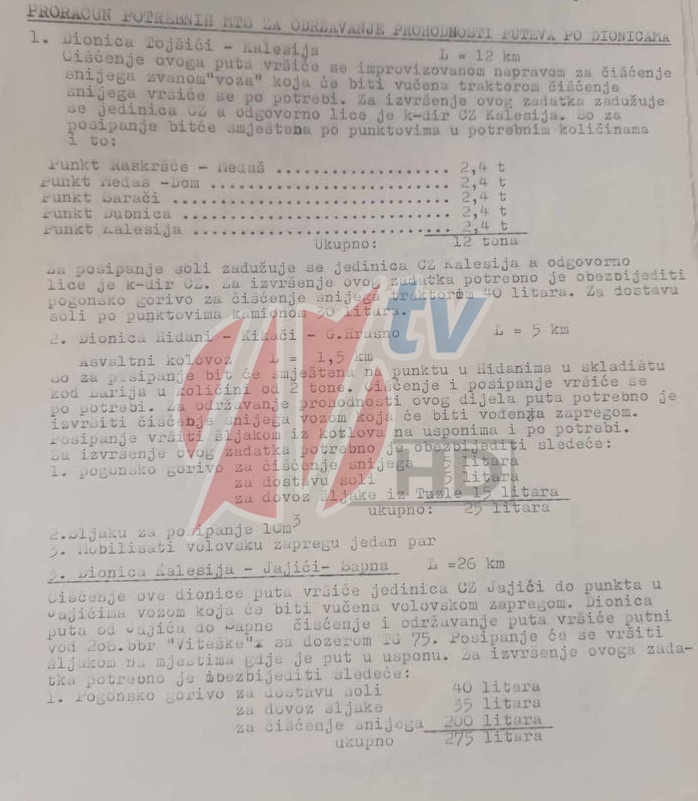 Zahvaljujući našim vrijednim čitateljima, došli smo u posjed dokumenata koji nam pokazuju kako su se putevi čistili i održavali u onom najtežem periodu po Kalesiju – periodu agresije.