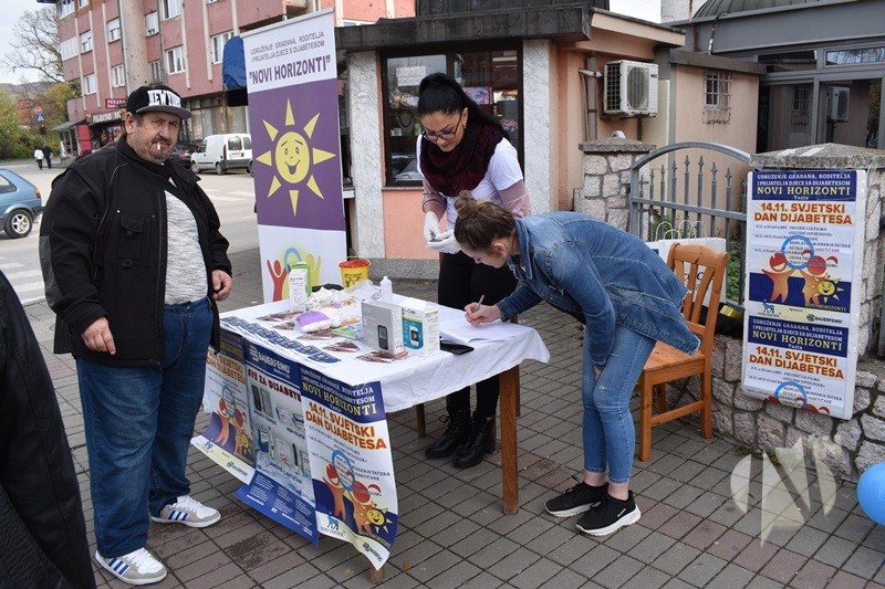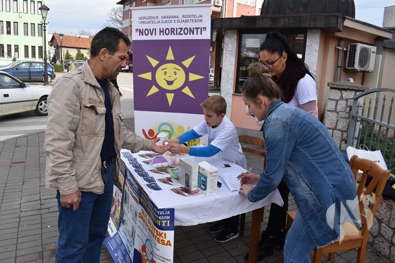 Članovi Udruženja “Novi horizont” Tuzla danas su obilježili Svjetski dan dijabetesa u Kalesiji akcijom mjerenja šećera u krvi.