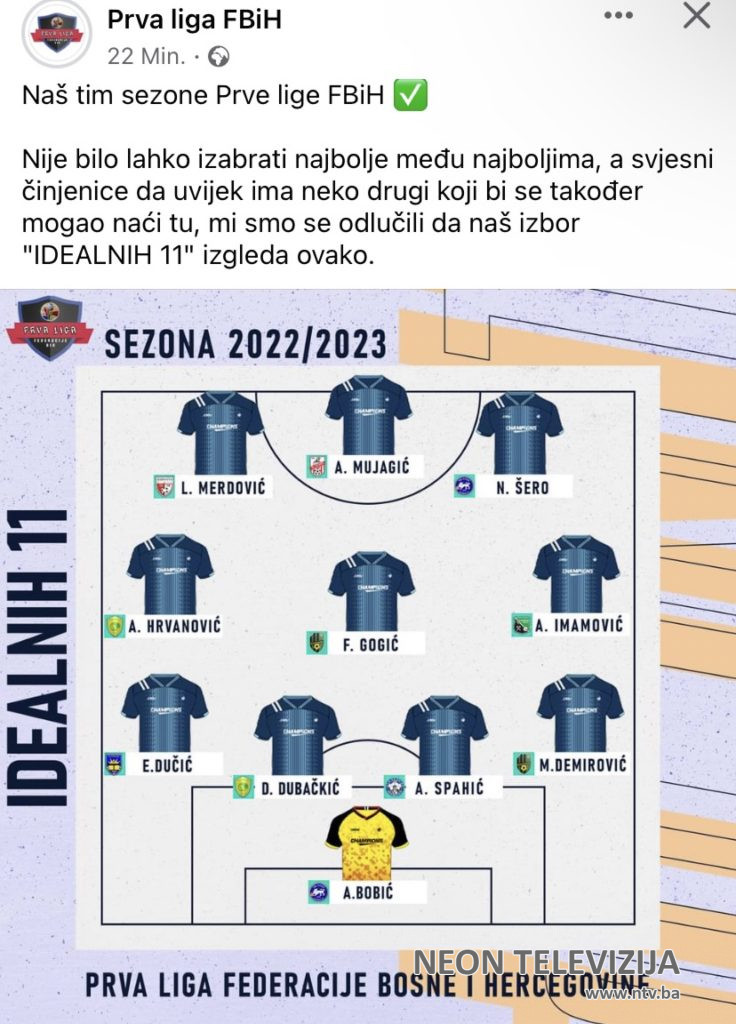 Kalesijac Armin Spahić izabran je u najbolji tim sezone ove godine u Prvoj Ligi FBiH od strane poznatih novinara.