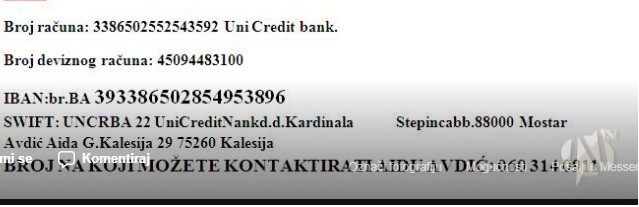 A sredstva možete uplatiti na broj računa koji vidite na fotografiji ispod