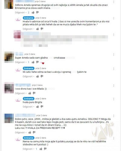 -“Prvo me bilo strah reakcije ljudi ali uz razgovor sa suprugom koji mi je velika podrška, odlučila sam da snimam klipove za svoj YouTube kanal. Na početku je mali broj ljudi pratio moj kanal, ali se onda iznenada počeo povećavati broj pretplatnika, tako da je sada brojka onih koji redovno prate moj rad 500”, govori Amela za NTV.