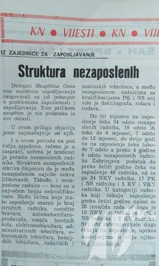 Kalesijske novine- Broj 10, Maj 1978.- “Struktura nezaposlenosti”