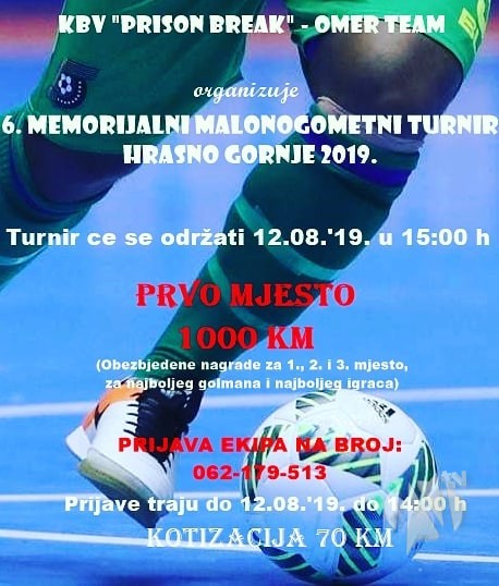 KBV “Prison Break” organizuje 6. Memorijalni malonogometni turnir Hrasno Gornje 2019.