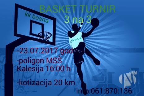 Košarkaški klub “Bosna” Kalesija organizuje basket turnir 3 na 3. Turnir će se održati 23.jula na poligonu Mješovite srednje škole Kalesija sa početkom u 16 sati.