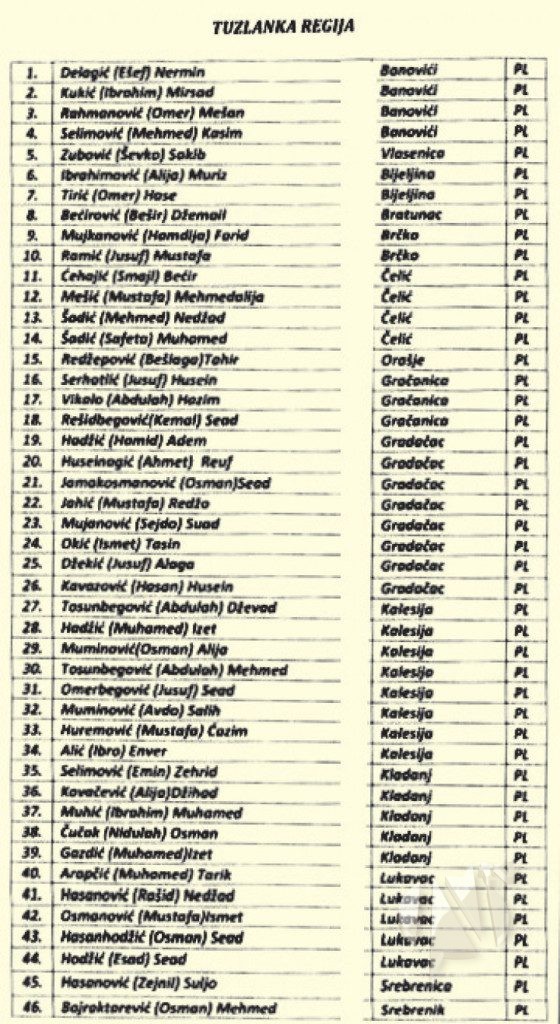 Kladanj: Zehrid Selimović, Džihad Kovačević, Muhamed Muhić, Osman Čučak, Izet Gazdić;