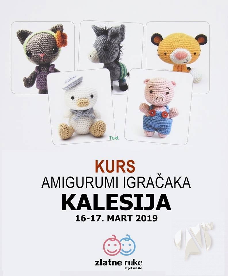 Udruženje “Snaga nezavisne žene” Kalesija u saradnji sa “Zlatne ruke” organizuje dvodnevni kurs amigurum, subotu i nedjelju, 16. i 17. marta u trajanju od 9-14 sati. Kurs će se održati u prostorijama sportske dvorane Kalesija. Žene koje žele se prijaviti na kurs amigurum je besplatan, s tim da materijal košta 10 KM.