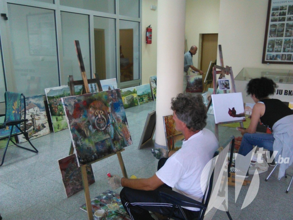 Peta Kalesijska likovna kolonija nastavlja sa radom u centru Kalesije. Poslije jučerašnjeg otvaranja i prvog dana rada u haremu Atik džamije kod Tojšića, učesnici kolonije preselili su se u objekat Bosanskog kulturnog centra “Alija Izetbegović“ u centru Kalesije. U ambijentu hola i prostoru ispred ovog impozantnog zdanja, već od ranih prijepodnevnih sati vrijedni likovni umjetnici stvaraju svoja djela, od kojih su neka sa motivima Kalesije.