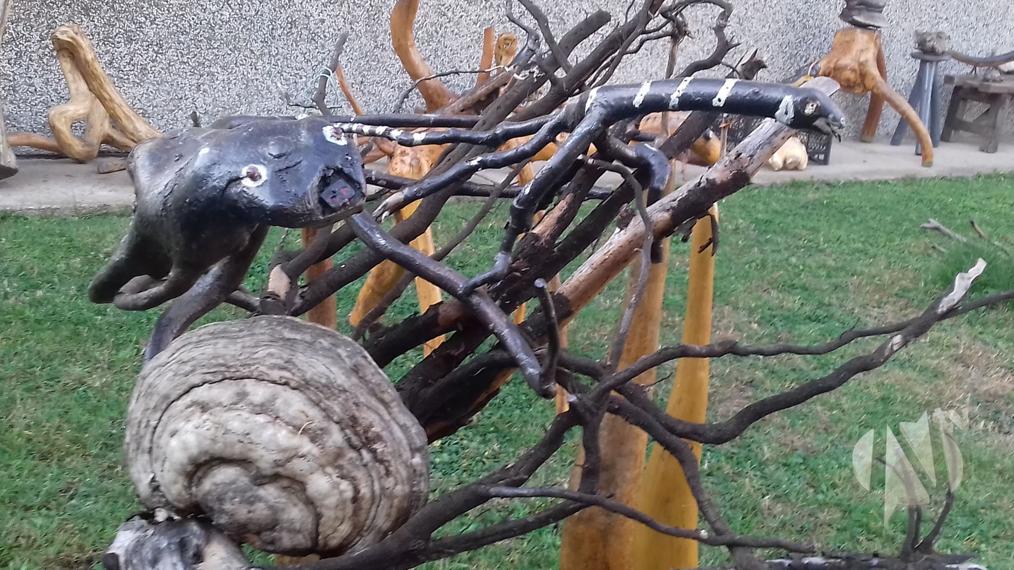 U njegovoj avliji ima figurica kornjače koje su bile izraslina na drvetu. Svoje mjesto našao je i vuk ali i gušter koji su bili samo grana. Zahvaljujući farbi i kreativnosti dobile su današnji izgled.