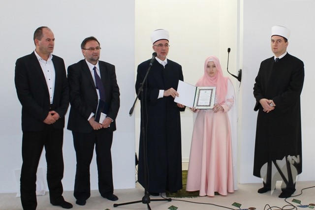 Mladoj hafizi je jednokatnu stipendiju i priznanje uručio direktor Fonda “Bošnjaci” iz Sarajeva Šahin Kerla.