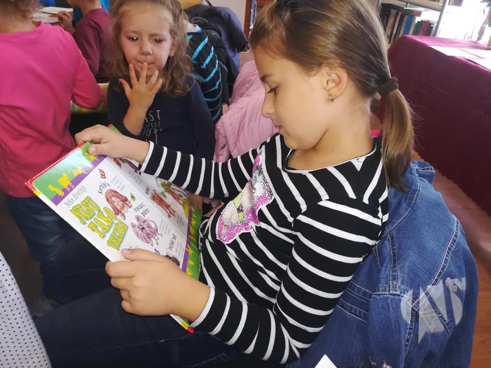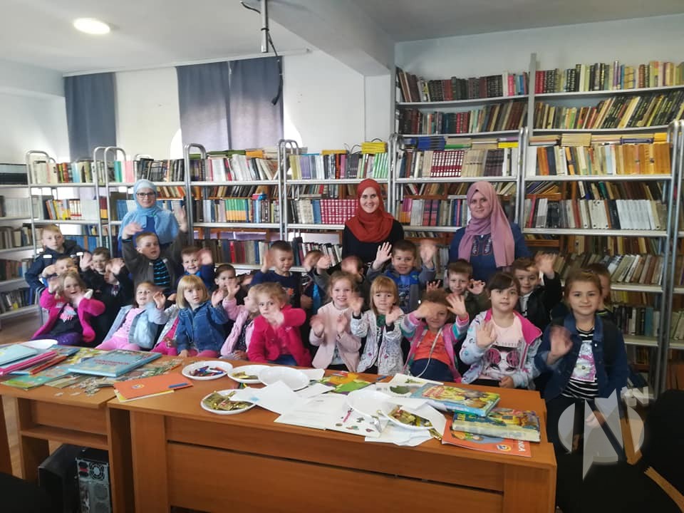 Bibliotekarka Advija Hodžić im je objasnila kako se postaje član biblioteke, koje su to usluge koje biblioteka pruža svojim članovima te koje knjige mogu posuditi u biblioteci. Mališanima se naviše svidjelo dječije odjeljenje i to slikovnice, bojanke i ilustrovane knjige.