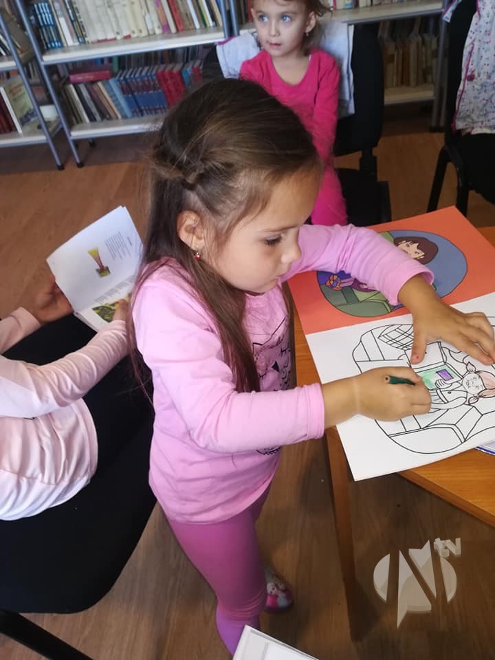 Bibliotekarka im je pripremila mnoštvo slikovnica koje su oni sa oduševljenjem prelistavali a nakon toga su imali zadatak da nacrtaju nešto što im se najviše svidjelo u biblioteci.
