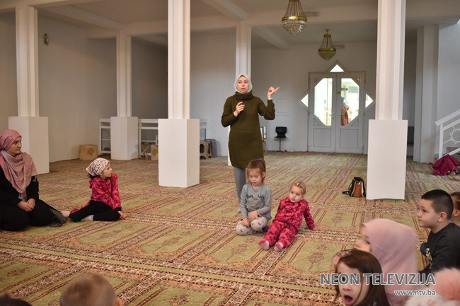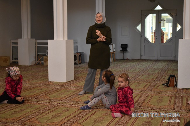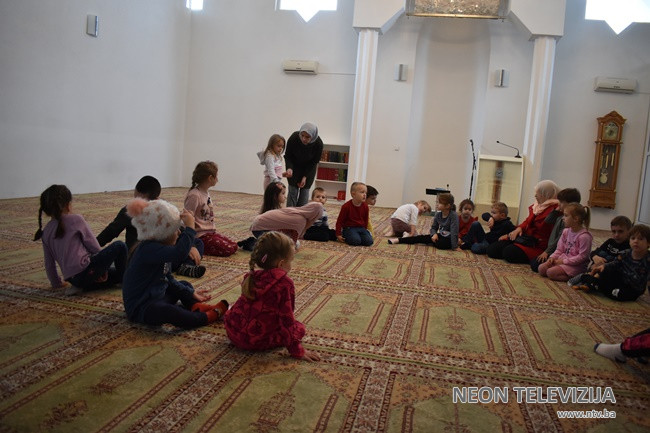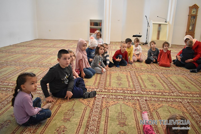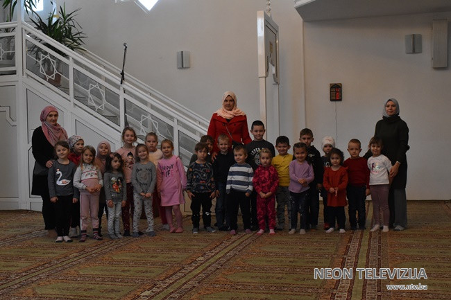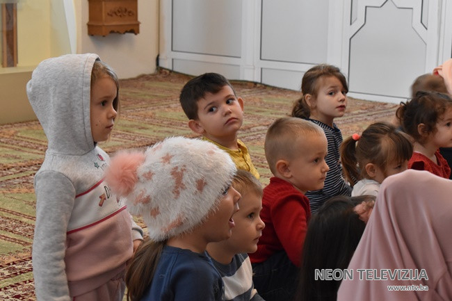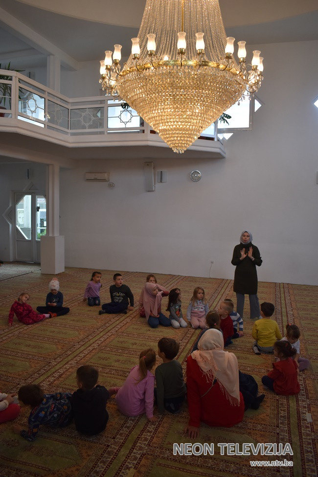 Islamski pozdrav, kako se ponaša u džamiji, kada se uzima abdest i još mnogo toga danas su naučili mališani private predškolske ustanove “ Vezeni most” Kalesija na času vjeronauke koji je održan u Čaršijskoj džamiji.