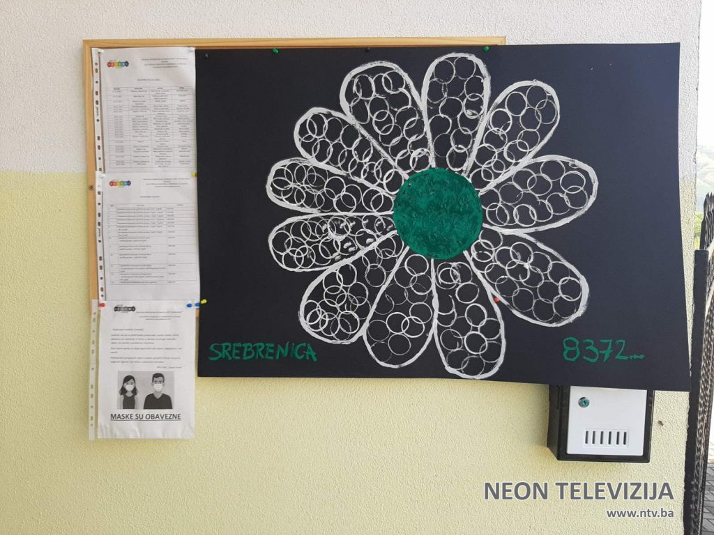 Malene ručice koje su izradile srebrenički cvijet, okačili su ispred ulaza u vrtić, da podsjeća na Srebrenicu i njenu historiju.