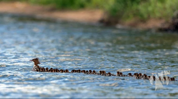 Mama patka i 76 malih pačića koji je prate, nevjerojatan su prizor, a sve je fotoaparatom uhvatio fotograf Brent Cizek na jezeru Bemidji u Minnesoti.