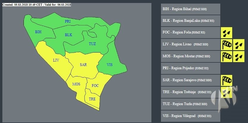 Za dana vikenda preovladavaće suho i djelimično sunčano vrijeme. Federalni hidrometeorološki zavod (FHMZ) BiH navodi da će se maksimalne temperature zraka kretati između 12 i 18 stepeni Celzijusovih. Prema trenutnim sinoptičkim kartama, u BiH se sljedeće sedmice očekuje nestabilno vrijeme sa kišom i snijegom. Kiša se prognozira početkom sedmice, a snijeg je moguć pred kraj sedmice (17. i 18. mart) u Krajini i centralnoj Bosni. Temperature zraka biće u laganom padu a prognozirane minimalne temperature zraka od 16. marta spuštaće se ispod jedan stepen Celzijusov.