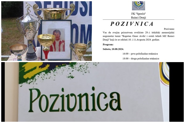 U organizaciji FK “Spreča” Rainci Donji održat će se XXIX Memorijalni turnir “Kapetan Omer Avdić i ostali šehidi MZ Rainci Donji”. Turnir će se održati 10. i 11. augusta. Prva utakmica, 10. augusta igra se sa početkom u 16:00 sati, a druga u 18:00 sati.