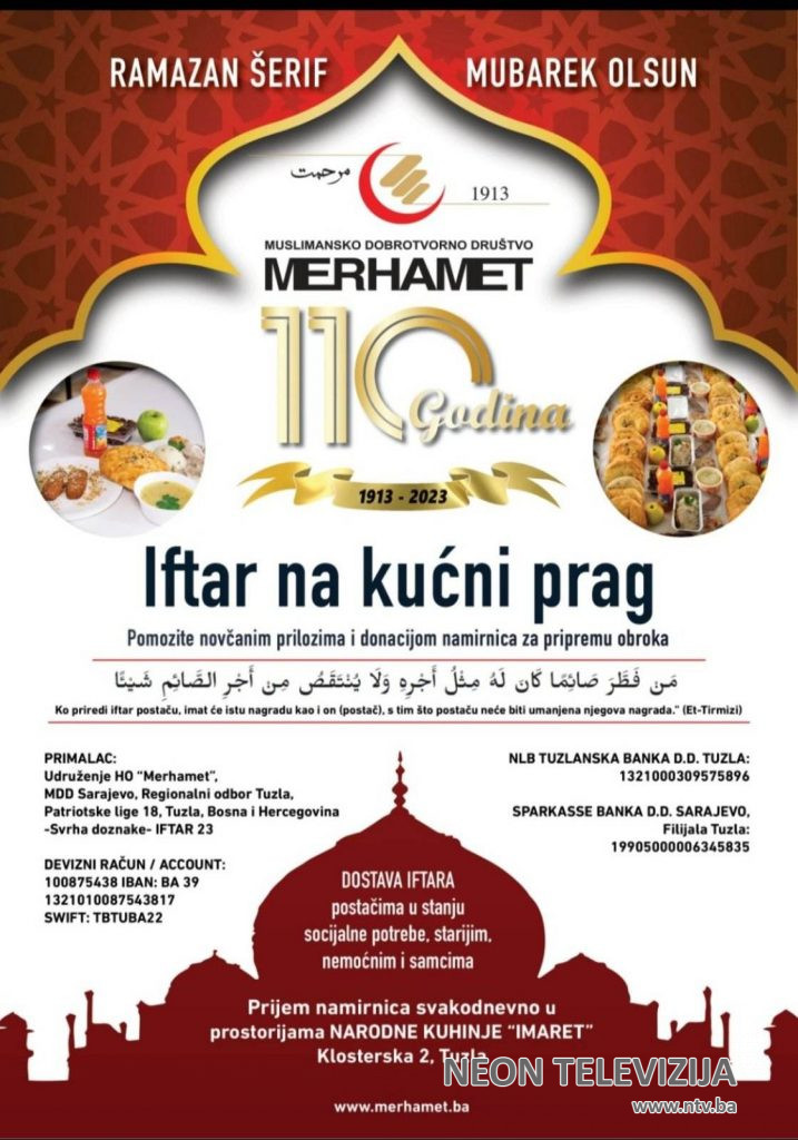 “Zahvaljujemo se osoblju kalesijskog Centra za socijalni rad i tamošnjim volonterima koji su u dvije grupe pomogli u podjeli iftara na terenu, te se potrudili da topli obroci na vrijeme stignu do postača. U okviru našeg “IFTARA NA KUĆNI PRAG” jučerašnji dan je bio poseban jer smo pripremili i na teren isporučili više od 700 iftara. Čestitamo našem vrijednom kuharskom osoblju na čelu sa Mirsadom Bundićem, koje je uspjelo odgovoriti na toliki broj zahtjev sa terena. Posebna zahvalnost opet ide “Merhametu” Njemačke, gospođi Edini Kadirić i njihovim donatorima, našim ljudima koji žive i rade u toj zemlji. Zahvaljujemo se svim donatorima i pozivamo druge koji su u mogućnosti da nas podrže u namjeri da nahranimo što više postača na našem području.”, poručuju iz Merhamet RO Tuzla.