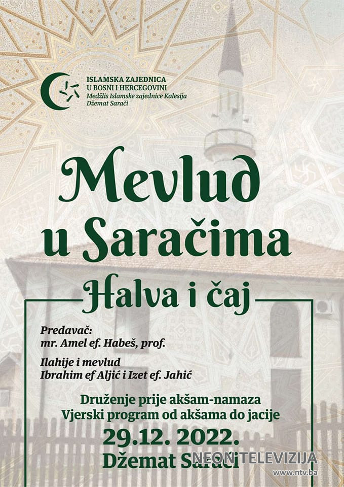 U džematu Sarači danas (29.12.2022) će biti upriličena mevludska svečanost, nakon akšam namaza.