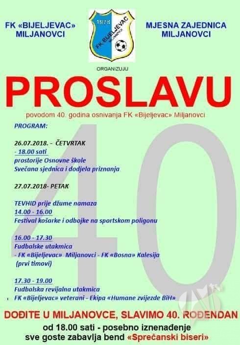 Miljanovcima je sve spremno za fudbalski spektakl. Obilježava se četrdeseti rođendan kantonalca FK Bijeljavac.