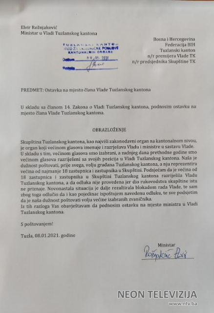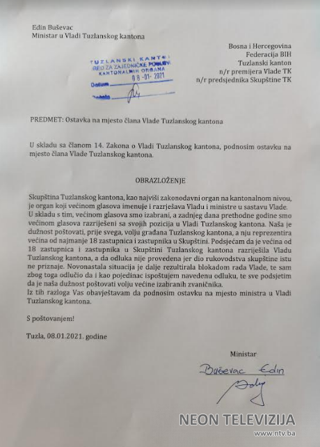 Ministri u Vladi TK Edin Buševac i Elvir Rožnjaković danas su podnijeli ostavke na ministarske funkcije.