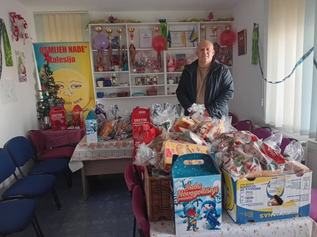 Dobro poznato ime, dobro poznata namjera, koja je prepoznata i od strane dobrih ljudi. Ovom rečenicom smo prošle godine počeli tekst,a počet ćemo i ovog decembra jer zaista je to priča koja živi već devet godina. I u decembru 2025. godine humanitarac Miralem Hasanović sa svojim prijateljima, donatorima obezbijedio je novogodišnje paketiće za štićenike Udruženja “Osmijeh nade” Kalesija.