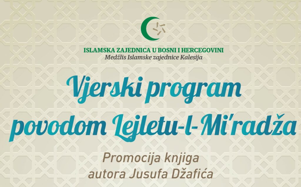 Medžlis Islamske zajednice Kalesija povodom mubarek-noći Lejletul-Miradža organizuje vjerski program u okviru kojeg će biti upriličena i promocija knjiga „Preporodne teme“ i „Nuru-š-šem'a – Studija o ahiri-zuhru“, autora Jusufa Džafića, koji će biti i promotor.