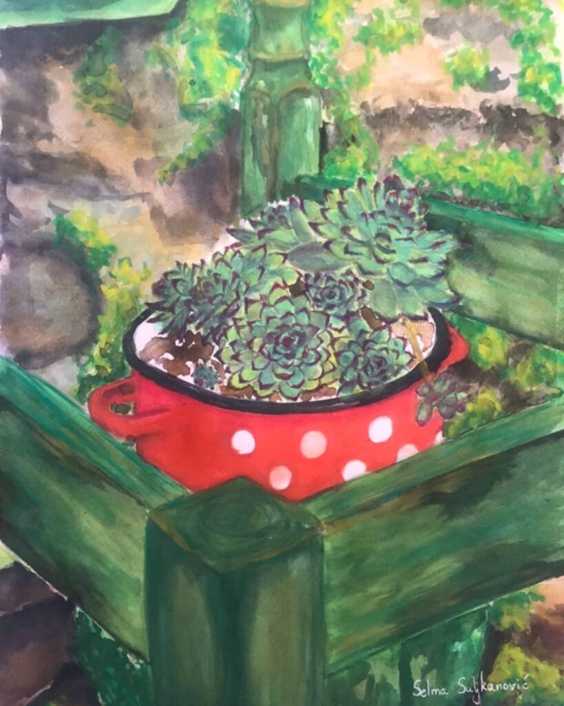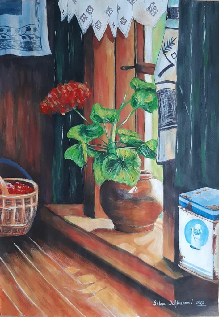 Prvo je to bilo crtanje, naravno, ali sa vremenom je počeo ozbiljniji rad kako je moje interesovanje raslo za drugim tehnikama i oblicima slikarstva. “Pravi” rad je definitvno počeo i postao ozbiljan upoznavanjem, mog sada mentora i dobrog prijatelja, Adila Mešanovića. U ovoj priči svakako trebam spomenuti meni drage osobe koje su inicirale taj susret, prije svega Esada Spahić, zatim Muhamed Džananović. Prvi pristup radu sa akrilom na velikom platnu bila je kolonija u Džafićima, ujedno i moja prva kolonija kada sam dobila priliku da radim sa drugim bosanskohercegovačkim slikarima kao ravnopravni član likovne kolonije. Tada kao neko vrlo neiskusan u odnosu na akademske i slikare amatere sa dugogodišnjim iskustvom, obuzeta sam bila tremom i odjednom nije više bilo lahko povući kistom po platnu. Međutim, vremenom se naučimo da nijedan početak nije lagan, da su nerijetka razočaranja u radu i da uvijek treba tražiti pozitivnu nit. A opet, u svemu tome, najbitnija je podrška vama bliskih ljudi i onih koji u vama vide potencijal. Stoga sam zahvalna, prije svega, svojim roditeljima što me nikada nisu sputavali na putu umjetnosti, što su udovoljavali luckastim zahtjevima jedne tinejdžerke i pomagali da ispuni svoje želje, zatim i prijateljima koji su cijenili moj rad. Moj mentor svakako da mi nikada nije dopustio da se omalovažim i bodrio me da idem dalje, učeći me kako o slikarstvu tako i o mnogo čemu iz života, tako sam stekla raznovrsno znanje i istinski dobrog prijatelja. Stoga i uzgred tremi, uz dobro društvo i postepeno opuštanje u radu, sa svake kolonije sam ponijela lijepe uspomene i osjećaj ispunjenosti. U svemu tome sam shvatila – da sam tek na početku(!), da nikada nećemo sve naučiti i da uvijek ima mjesta za rast i napredak. Svaka naredna slika je bila za mene novo iskustvo, a potezi su postajali lakši, sigurniji… kao i moje samopouzdanje u rad. Slikanje je bilo i ponovo postalo moje sigurno mjesto, nešto za što u posljednje vrijeme teško nalazim vremena, ali se svakako trudim da na to ne zaboravim” kazala je Selma za portal NEON Televizije.