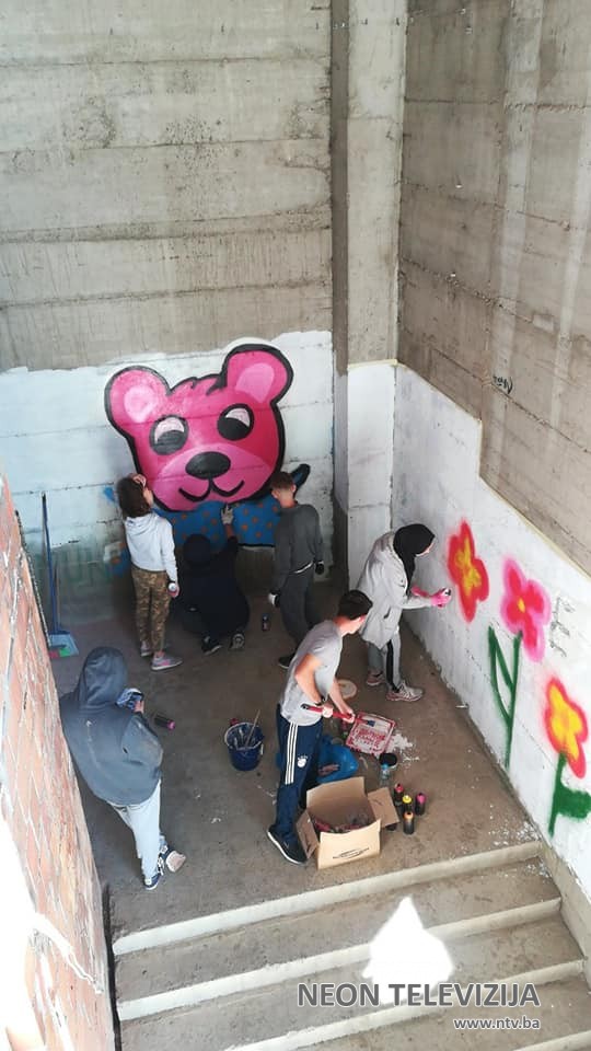 Mladi su također iskoristili svoje znanje o korištenju sprejeva koje su naučili na radionici crtanja, te su zajedno precrtali neprimjerene sadržaje koje su se nalazilei na ulazu u novi Centar.