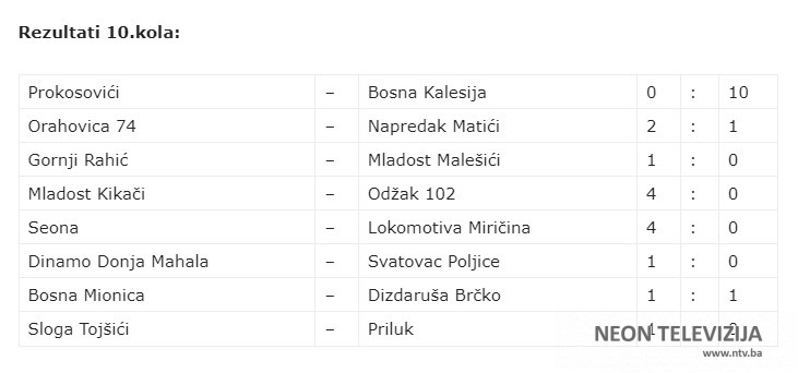 Fudbaleri Bosne iz Kalesije su sa 10:0 slavili u Prokosovićima. Po tri pogotka postigli su: Dedić i Suljić, dvostruki strijelac bio je Hasanović, a mrežu Prokosovića još su pogađali Alibašić i Muminović.