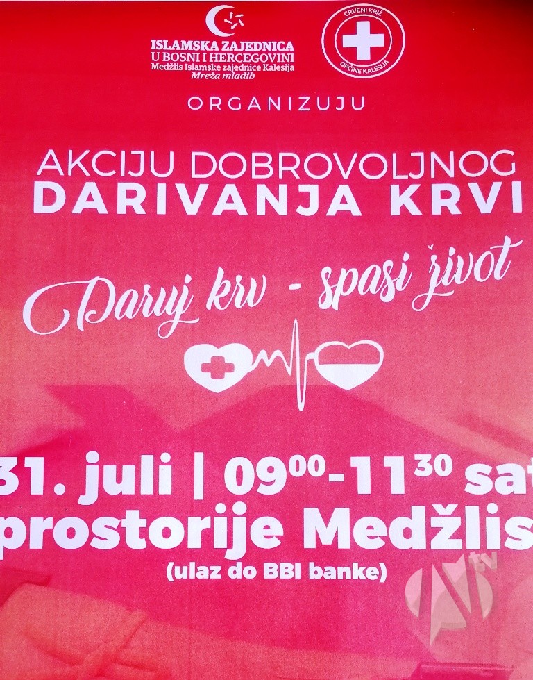 Mreža mladih Medžlisa Islamske zajednice Kalesija, u saradnji sa Crvenim križom Kalesija i Zavodom za transfuziologiju UKC Tuzla, organizuju akciju dobrovoljnog darivanja krvi.