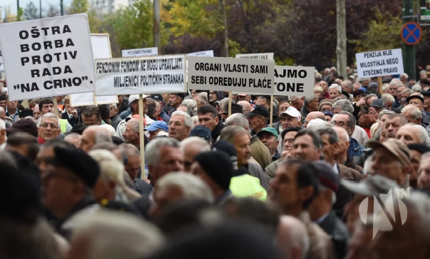Okupljeni penzioneri su protestirali, između ostalog, zbog neusvajanja novog zakona o penzijskom i invalidskom osiguranju koji je Vlada jučer na sjednici utvrdila u formi prijedloga i uputila u parlamentarnu proceduru po hitnom postupku.