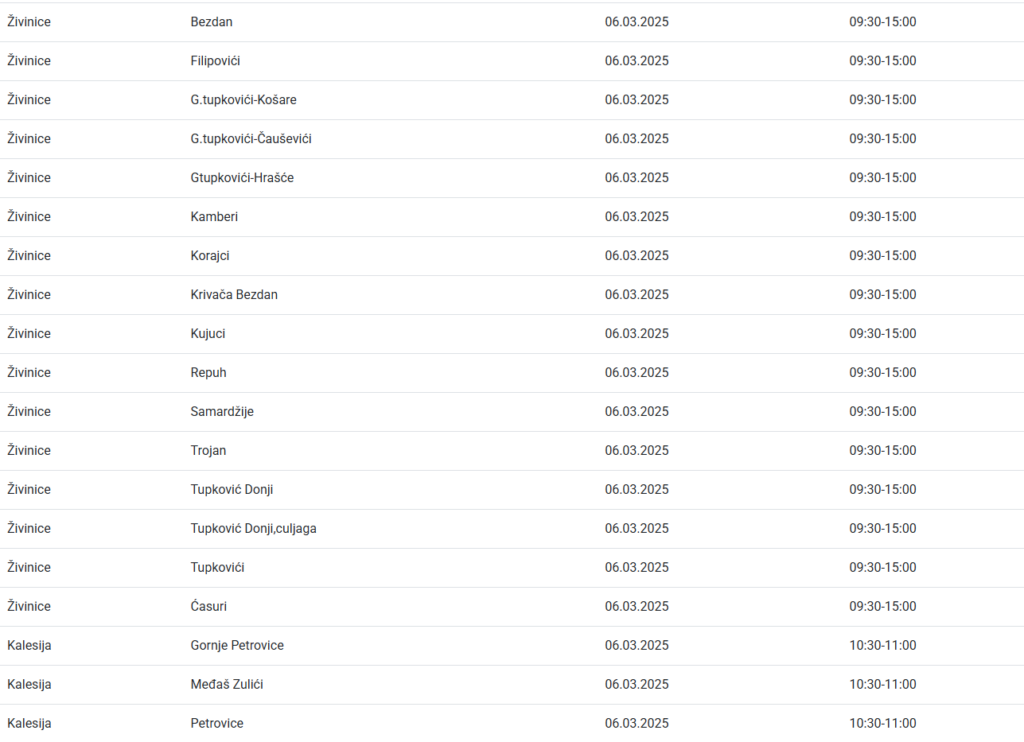 U nekoliko kalesijskih i živiničkih naselja danas će doći do privremene obustave isporuke električne energije.