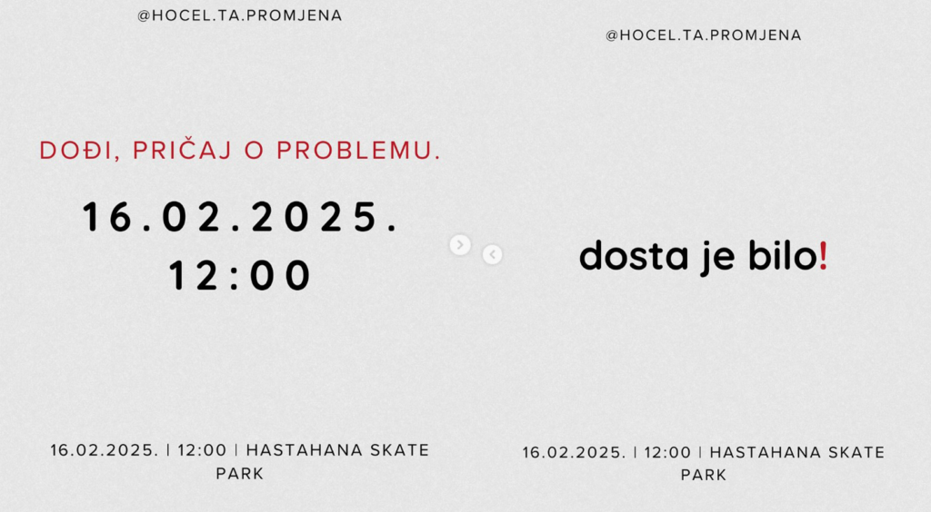 Neformalna grupa studenata “Hoće l’ ta promjena” u nedjelju (16. februar) sa početkom u 12 sati ispred Hastahana skate parka Sarajevu organizuje mirne proteste. Povod za mirne proteste je ubistvo Inele Selimović (37) i njenog 13-godišnjeg sina.